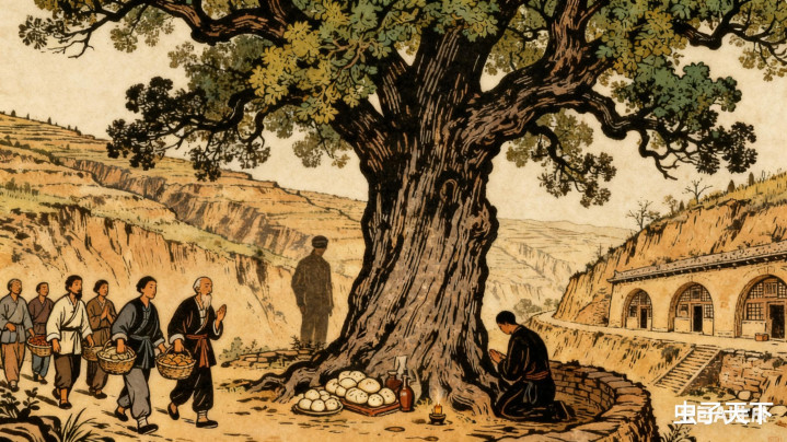 如今老槐树还立在董志塬上,每到辉煌,树下总摆着乡亲们送的蒸馍和米酒。