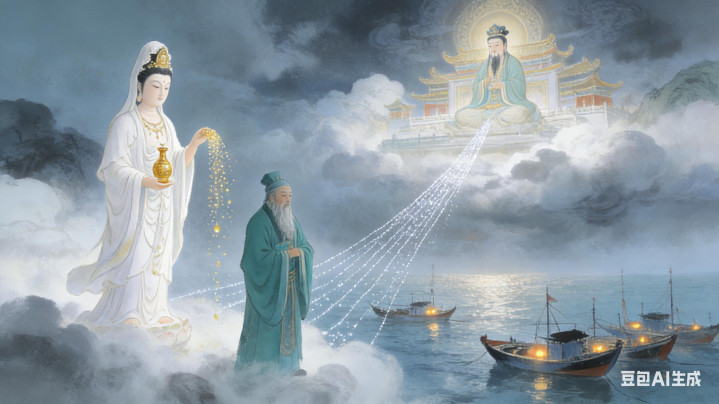 当夜,不雅音和玉帝现身不雅音庙。