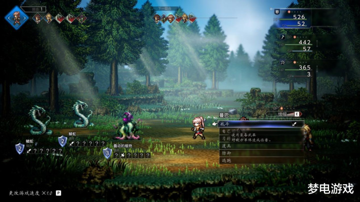提到斗争,最让东谈主咫尺一亮的详情是 8 东谈主声势运筹帷幄。昔时玩初代最多 4 东谈主上场,此次能分前后排及时切换,后排还能攒 BP、回景色,打起来无邪多了 —— 比如前排用剑士突破敌东谈主护盾,后排满 BP 的法师径直放群体工夫清场,这种 “控场 + 爆发” 的搭配,比昔时多了不少战术乐趣。