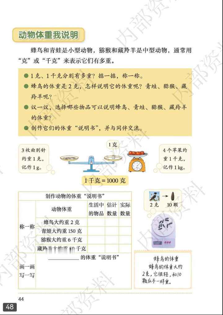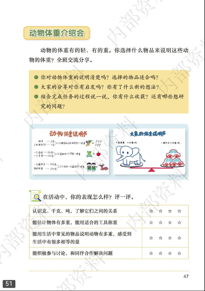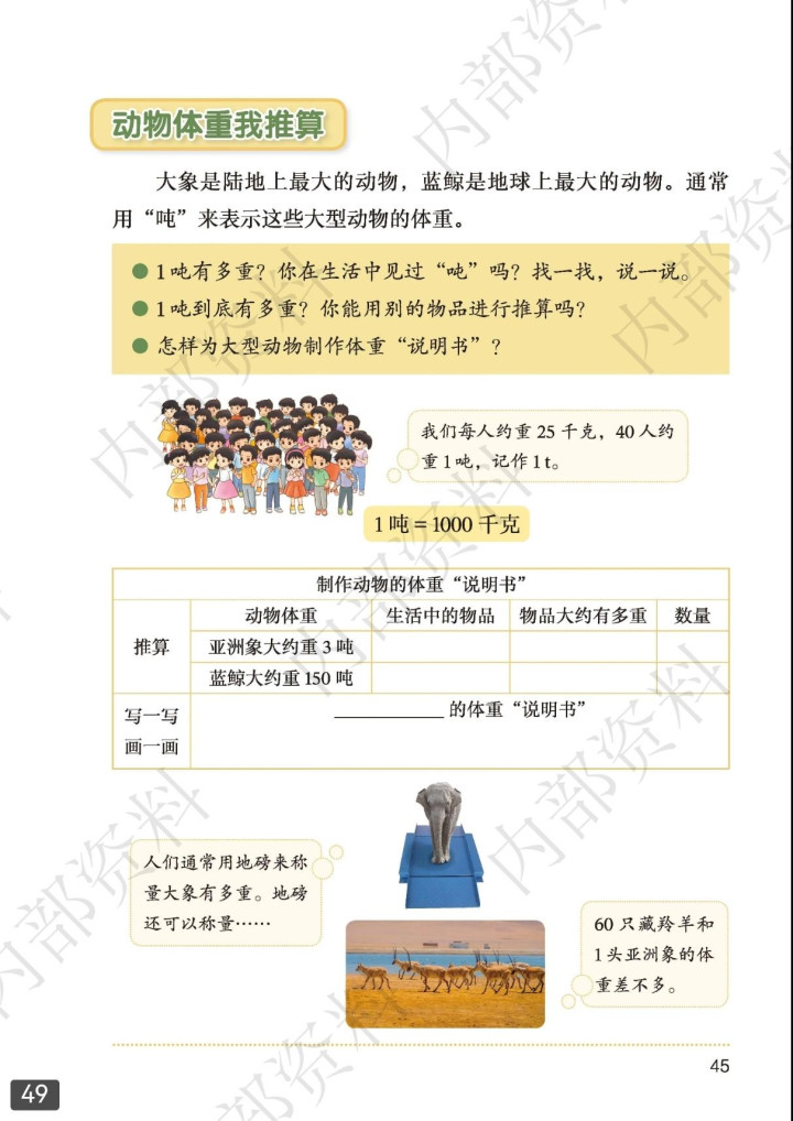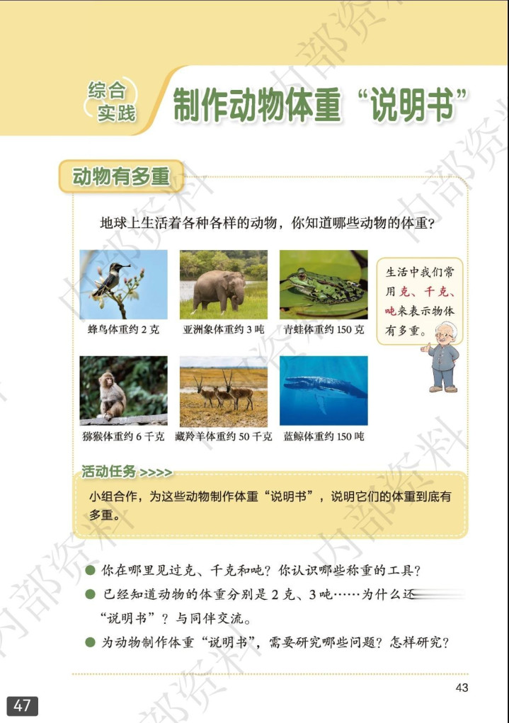 原《克、千克、吨》单位改为制作动物体重“阐述书”