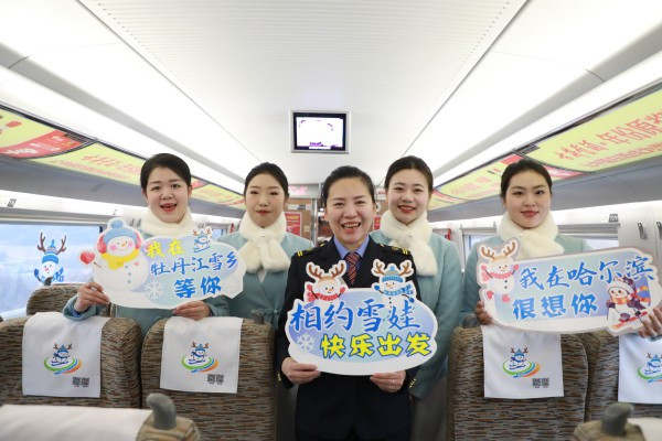 12月23日,一列编组8节车厢,满载冰雪元素的G3512次“雪娃号”列车从鸡西西站开拔,驶向北京。在哈牡高铁绽放七周年之际,这趟由中国铁路哈尔滨局集团公司(以下简称“哈尔滨局集团公司”)打造的冰雪主题列车化身一张转移的“冰雪柬帖”,指导游客千里浸式感受龙江冰雪文化。