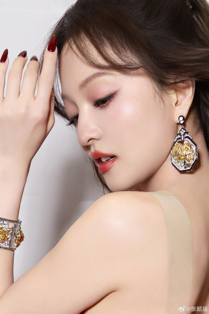 若是说粉白造型是她舞台里的 “梦境侧写”,那红色治服则是她藏在嗓音里的 “强烈底色”。这张里,她穿的红色治服是丝绒材质,领口是抹胸贪图,耳侧坠着枚琥珀纹理的耳环,刚好和唇色的正红呼应。她唱快歌时的嗓音向来有 “穿透力”,这丝绒红的舒服感,刚好能接住她嗓音里的强烈,连手抵额的行为,齐带着唱舞蹈台的张力。